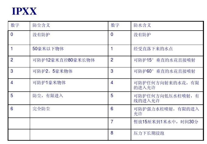 保護(hù)等級以ip后跟隨兩個數(shù)字來表示,數(shù)字用來明確保護(hù)等級。