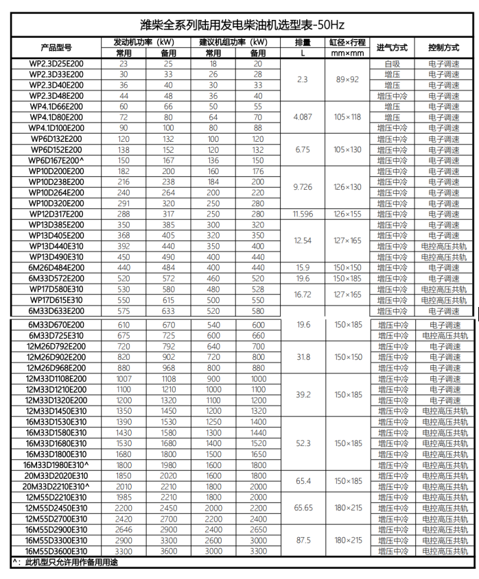 濰柴發(fā)電機(jī)(濰柴動(dòng)力)系列選型表: